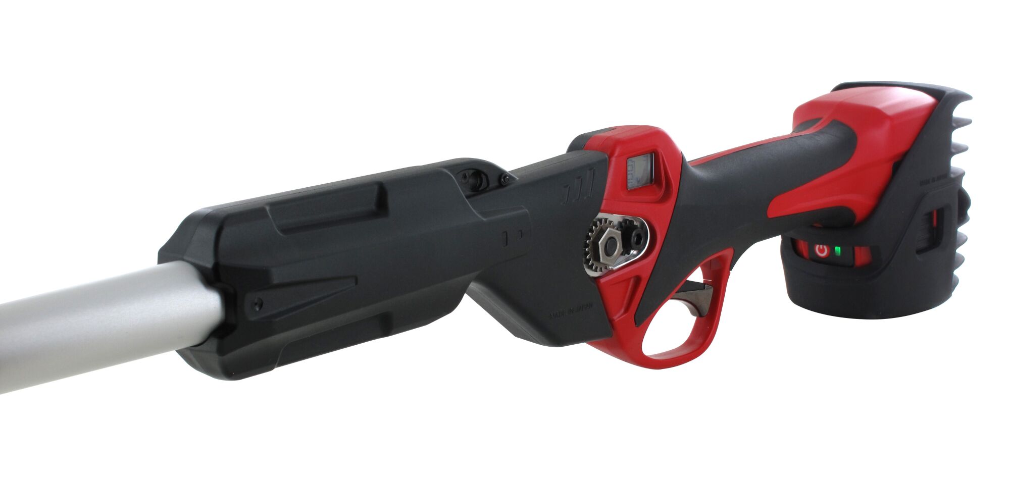 De ARS ET-720-0.9 is een professionele, compacte en perfect uitgebalanceerde accu-langarmsnoeischaar met een vaste lengte van 975 mm. Dankzij de praktische steel snoeit u comfortabel vanaf de grond zonder ladder of bukken. Afhankelijk van uw lichaamslengte kunt u hiermee takken bereiken tot circa 2,8 meter hoog. Deze langarmschaar deelt dezelfde hoogwaardige technologie als de EP-720 handmodellen: vlijmscherpe messen van drievoudig geslepen Japans staal zorgen voor een uitzonderlijk scherpe en zuivere snede met minimale weerstand. Het gepatenteerde onderblad voorkomt dat takken wegglijden, wat precisie en efficiëntie verhoogt. De steel is 270° roteerbaar, waardoor u de optimale werkpositie kunt kiezen zonder uw pols of arm te belasten. De snijkop heeft een ergonomische hoek van 15°, wat zorgt voor een natuurlijke snoeihouding en minder belasting tijdens langdurig gebruik. Een belangrijk voordeel van de ET-720-0.9 is dat de motor onderaan de steel zit, waardoor het zwaartepunt lager ligt en de machine veel lichter aanvoelt dan modellen met een motor bovenaan. Dit vermindert de belasting op armen en schouders aanzienlijk en maakt langdurig werken comfortabeler. Met een maximale snoeidikte van 20 mm is dit model ideaal voor professioneel snoeiwerk van jonge en middelgrote takken. Elke accu levert circa 3.500 knipbewegingen en met twee accu’s in de set kunt u ongeveer 7.000 keer knippen. De intelligente lader laadt de accu’s automatisch één voor één op. De ET-720-0.9 combineert bereik, ergonomie en Japanse topkwaliteit in één professionele machine.